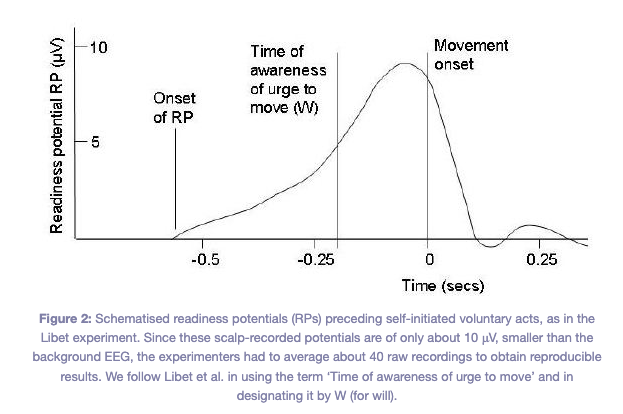[1] Libet, B., Gleason, C.A., Wright, E.W. & Pearl, D.K. ‘Time of conscious intention to act in relation to onset of cerebral activity (readiness-potential). The unconscious initiation of a freely voluntary act’, Brain (1983) 106: 623- 642.